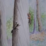 - acquerello: scoiattoli che si rincorrono sul cipresso